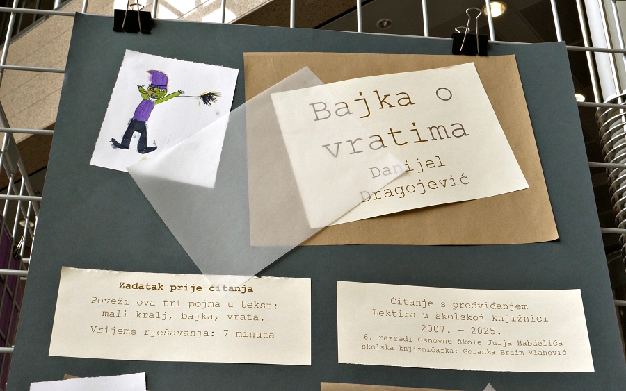 Izloženi su i literarni radovi nadahnuti njegovom Bajkom o vratima koji su nastali na satovima lektire s učenicima 6. razreda Osnovne škole Jurja Habdelića.