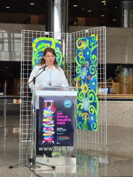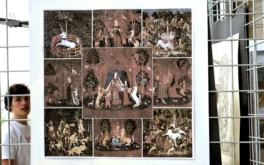 Učenici 2. razreda Škole za medicinske sestre Vinogradska pripremili su likovnu izložbu Jednorog – čudesno bajkovito biće i čitali poeziju, mentorica im je Milica Mikecin.