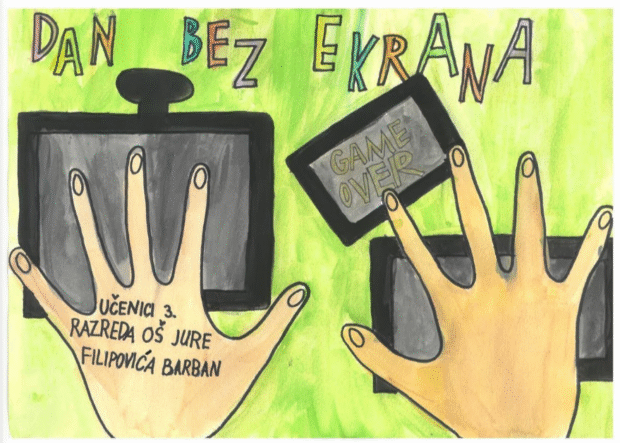 U 3. kategoriji natječaja Audiovizualna slikovnica nagrađen je rad Dan bez ekrana iz Osnovne škole Jure Filipovića, Barban. Priča o obitelji Ekranović istaknula se dobrom idejom i uspješnom realizacijom digitalne slikovnice koja obrađuje vrlo aktualnu i društveno važnu temu. Kroz jednostavnu i poučnu priču rad skreće pozornost na pretjeranu uporabu digitalnih uređaja u svakodnevnom životu te naglašava važnost obitelji, međusobne povezanosti i zajednički provedenog vremena bez ekrana. Priča je jasna i razumljiva, a poruka snažno usmjerena na stvarnost suvremenog obiteljskog života. Ilustracije su prirodne, zanimljive i skladno se uklapaju u cjelinu slikovnice, dodatno podupirući tijek priče i njezinu pouku. Iako tema danas često dolazi u središte različitih projekata, ona je i dalje iznimno aktualna i potrebna, osobito u radu s djecom i mladima.